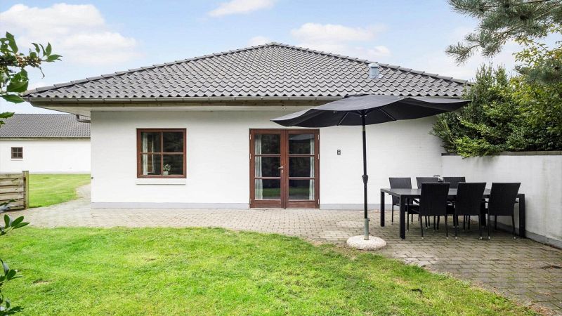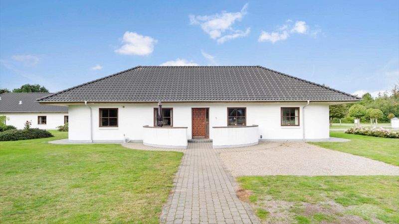 80 m² komfortlejlighed i "Oasen". Flot indretning, dejlig stue med underholdning, fuldt udstyret køkken og rummelige sove-værelser. Lyst badeværelse med spabad og sauna. Egen terrasse og indhegnet grund.