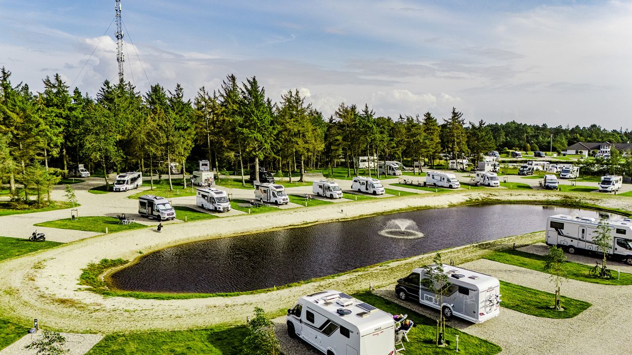 Unsere Stellplätze variieren von 5,5 m bis zu 13 m - alle mit ausreichend großen Rasenflächen. Wählen Sie daher gerne einen Platz, der zur Länge Ihres Wohnmobils passt. Viele der Plätze bieten einen schönen Blick auf den See mit Springbrunnen. Der Strand am Sønderstrand ist nur etwa 2,5 km entfernt, und der beliebteste Strand, Lakolk Strand, ist etwa 6 km entfernt. Genießen Sie den Tag am Strand mit Ihrem Wohnmobil oder besuchen Sie die vielen Sehenswürdigkeiten auf der Insel - und verbringen Sie den Abend in der Oase in friedlicher und ruhiger Umgebung.